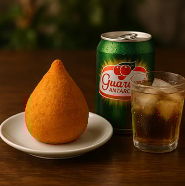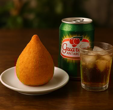 Elige tu salado favorito (coxinha, empadinha o esfiha) con una lata de Guaraná.