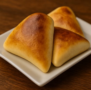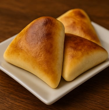 Salado tradicional horneado, con masa suave y relleno de carne sazonada con especias.