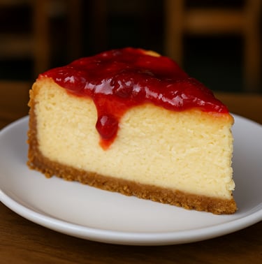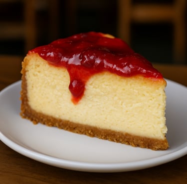 Cremoso y fresco, con base de galleta y cobertura de fruta.