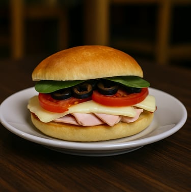 Pan fresco con jamón serrano, rúcula, tomate cherry y queso gouda. Una combinación elegante y sabrosa.