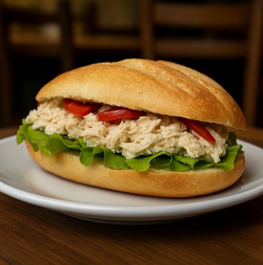 Pollo desmenuzado con mayo acompañado de pimentón y lechuga.
